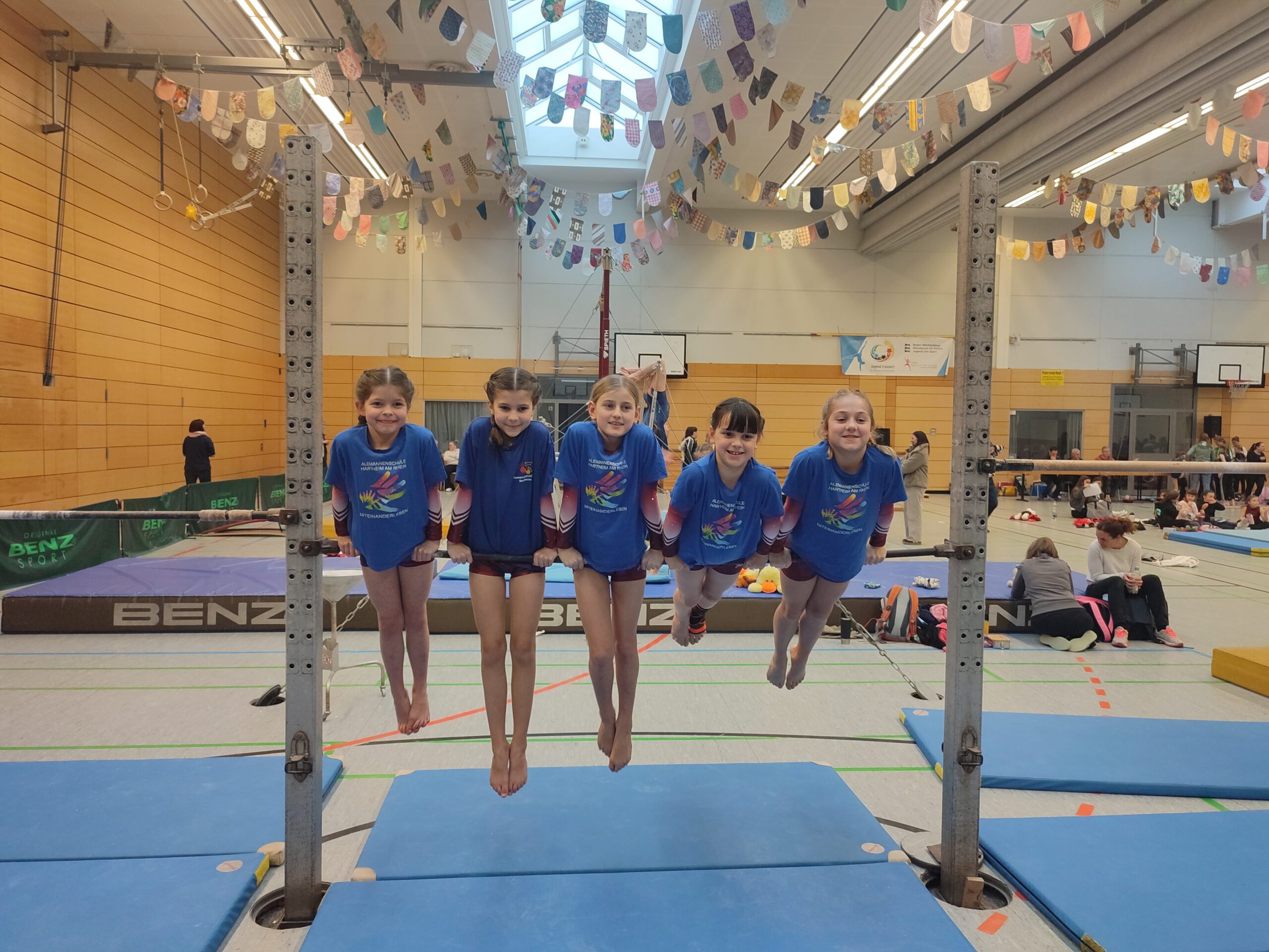 Unter der Leitung von Trainerin Rebecca Binninger turnten Mira Haberstroh, Lena Martin, Anna Graner, Liana Scheibel und Rosa Braun für die Alemannenschule.